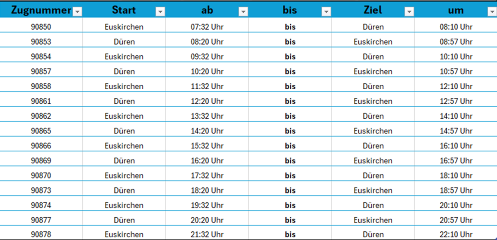 am Sonntag, 22. Februar, wird auf der Linie RB 28 aus betrieblichen Gründen ein Fahrzeug mit eingeschränkter Barrierefreiheit eingesetzt. Dies betrifft folgen Verbindungen: